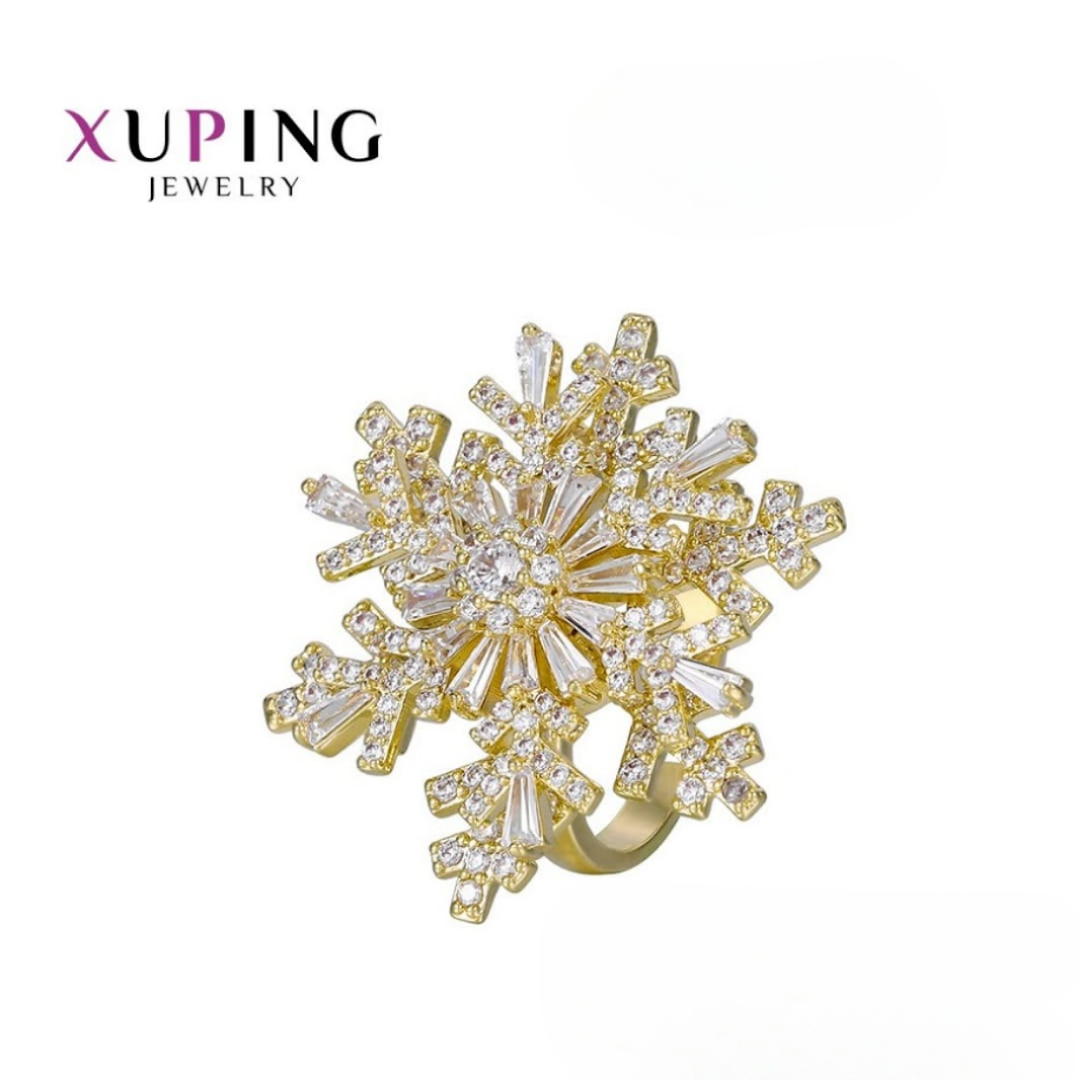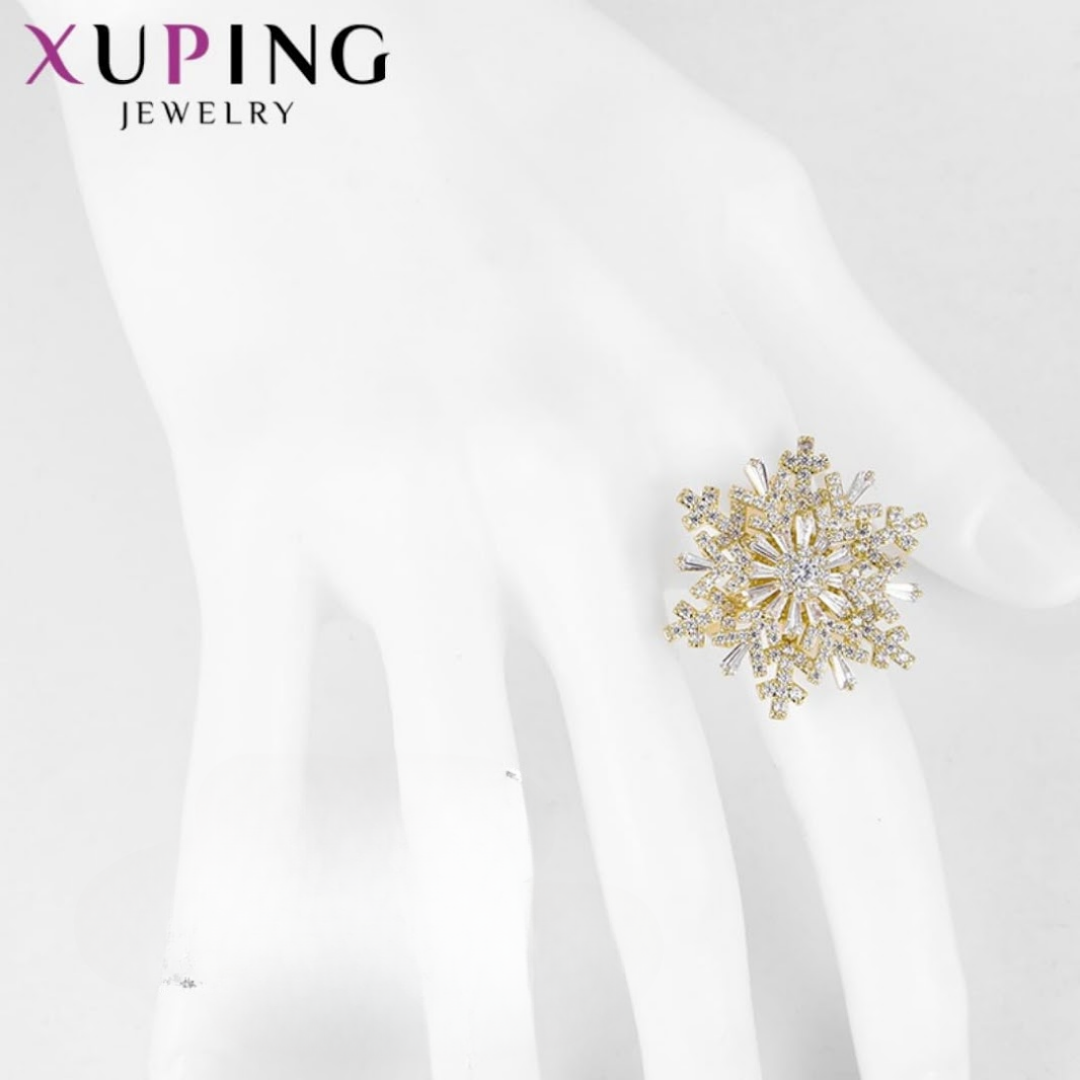 Hermoso Anillo Ajustable de Copo  de Nieve con Circonias Baño de Oro 14k