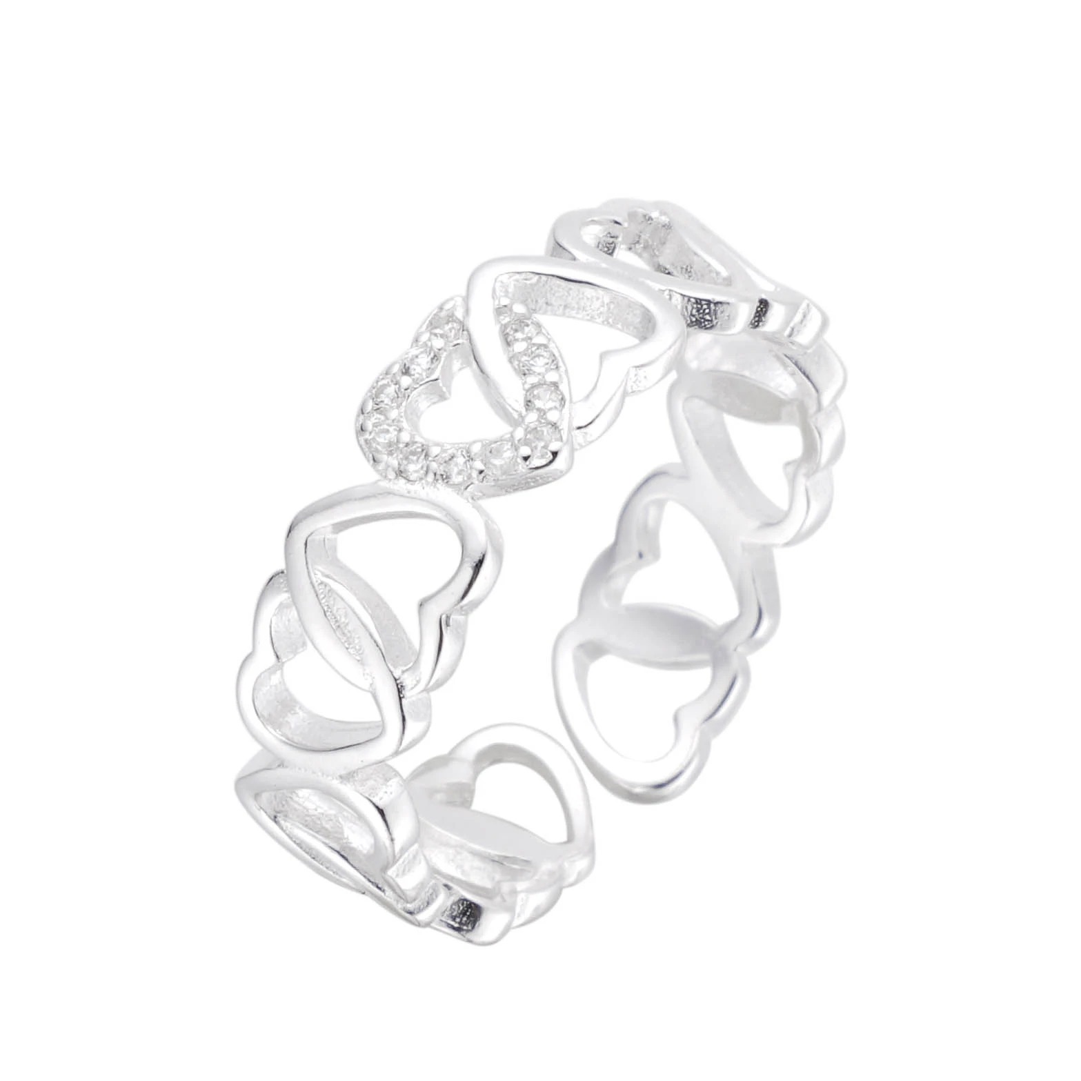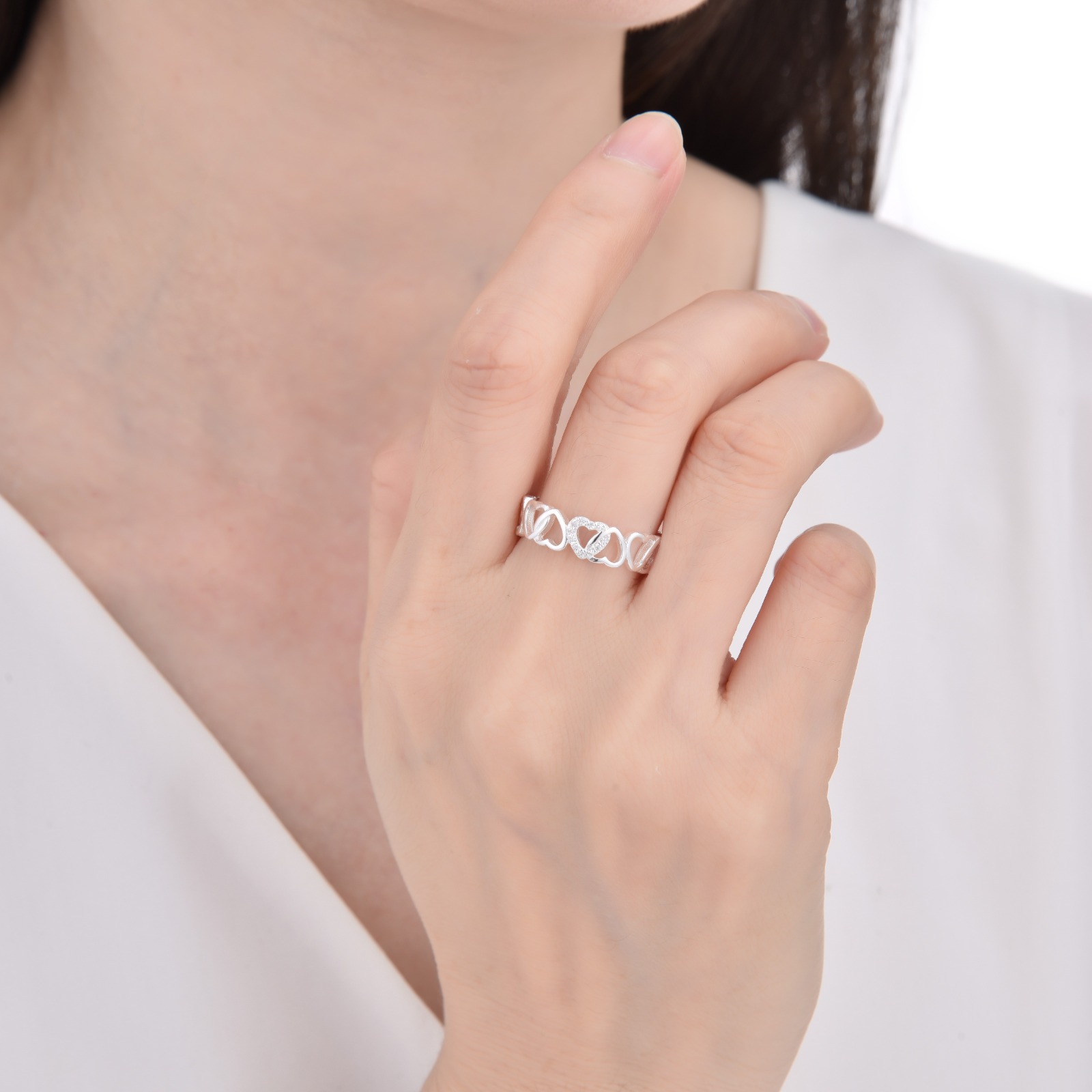Hermoso y Elegante Anillo de Corazones Ajustable. Plata Italiana 925.