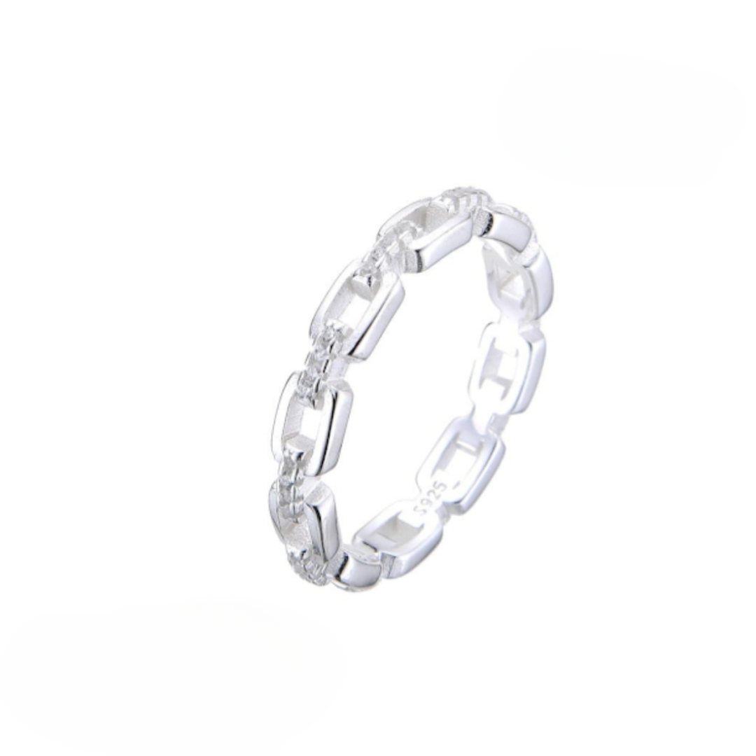 Hermoso anillo de eslavones con circonias pequeñas de plata 925