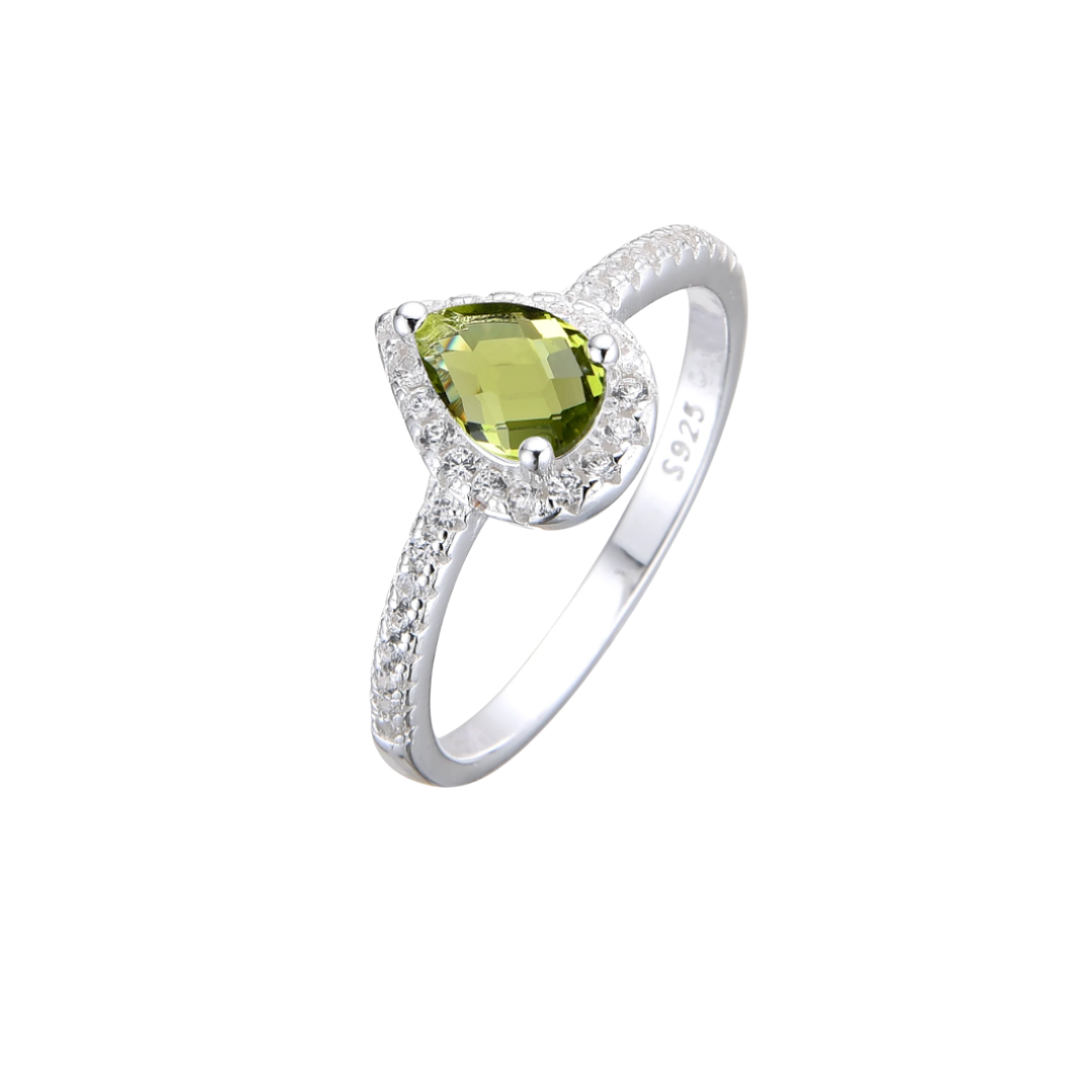 Hermoso Anillo de Gota en Color Verde de Plata Italiana 925