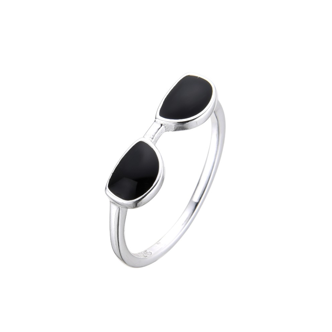 Hermoso anillo de lentes de sol, plata italiana 925 con circonias.
