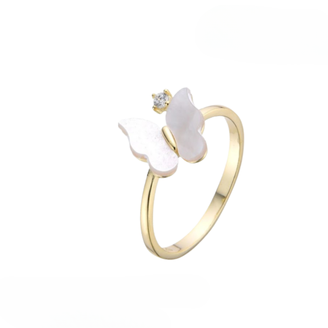 Hermoso anillo de mariposa plata dorada con circon pequeño, en plata 925