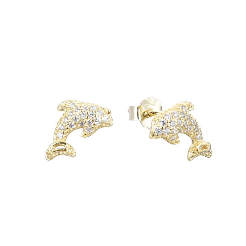 Hermosos Aretes de Delfín, Plata, Plata Dorada y Plata Rosada. Cierre de Mariposa.
