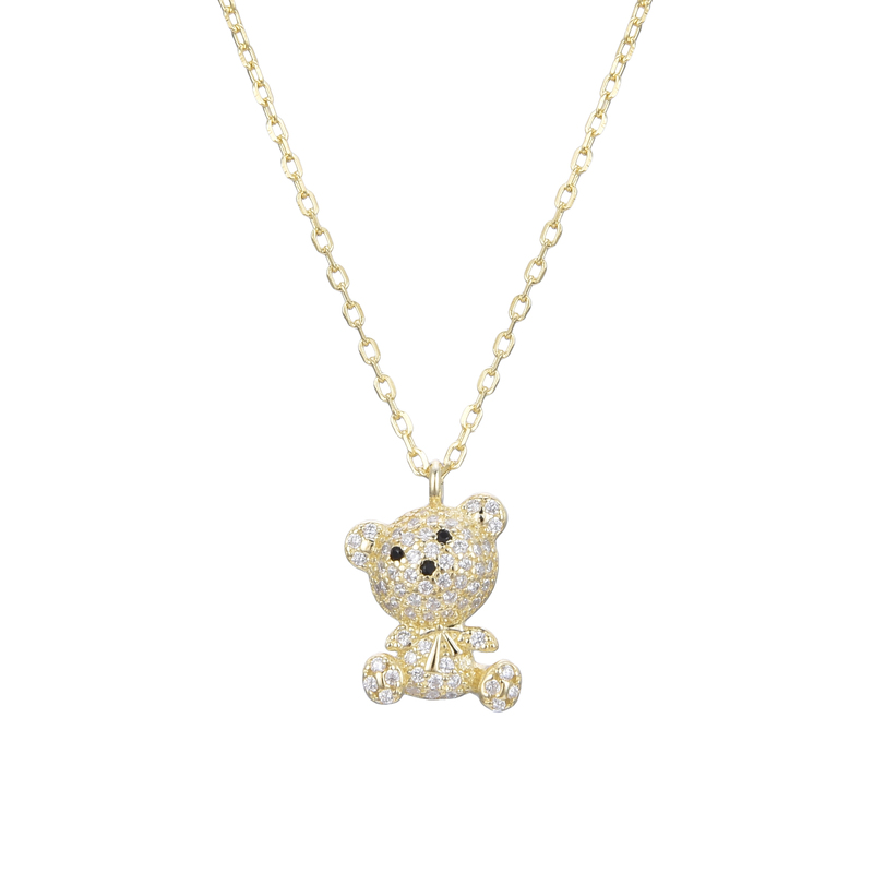 Hermosa cadena con dije de oso, plata italiana dorada 925 con circonias.