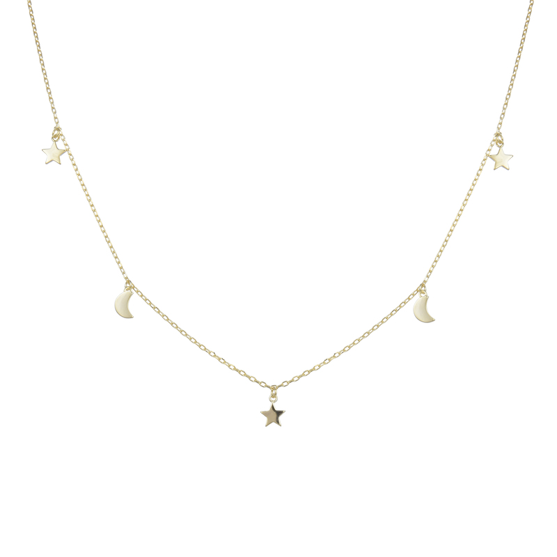 Hermoso choker de luna y estrella 35 +5 cm, plata italiana dorada 925.