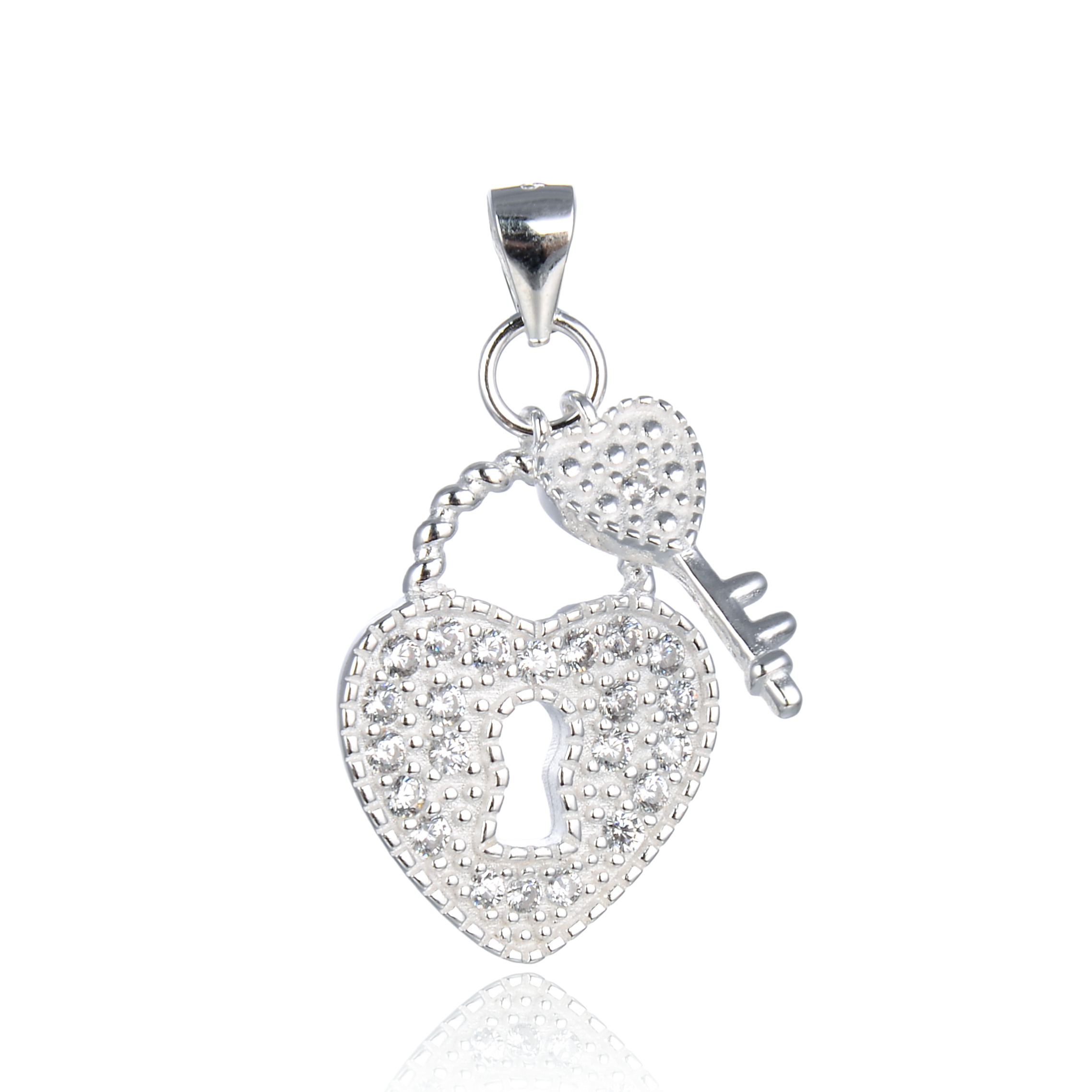 Hermoso dije de llave y candado, plata italiana 925 con circonias.