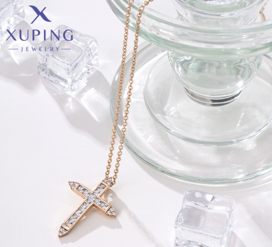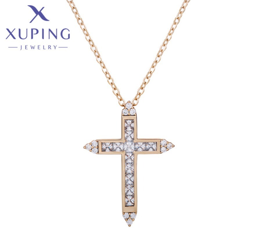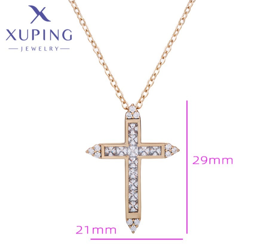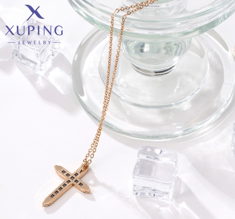 Hermosa y Elegante Gargantilla de Cruz Con Circonias, Baño de Oro Xuping Rose Gold 40 CMS.