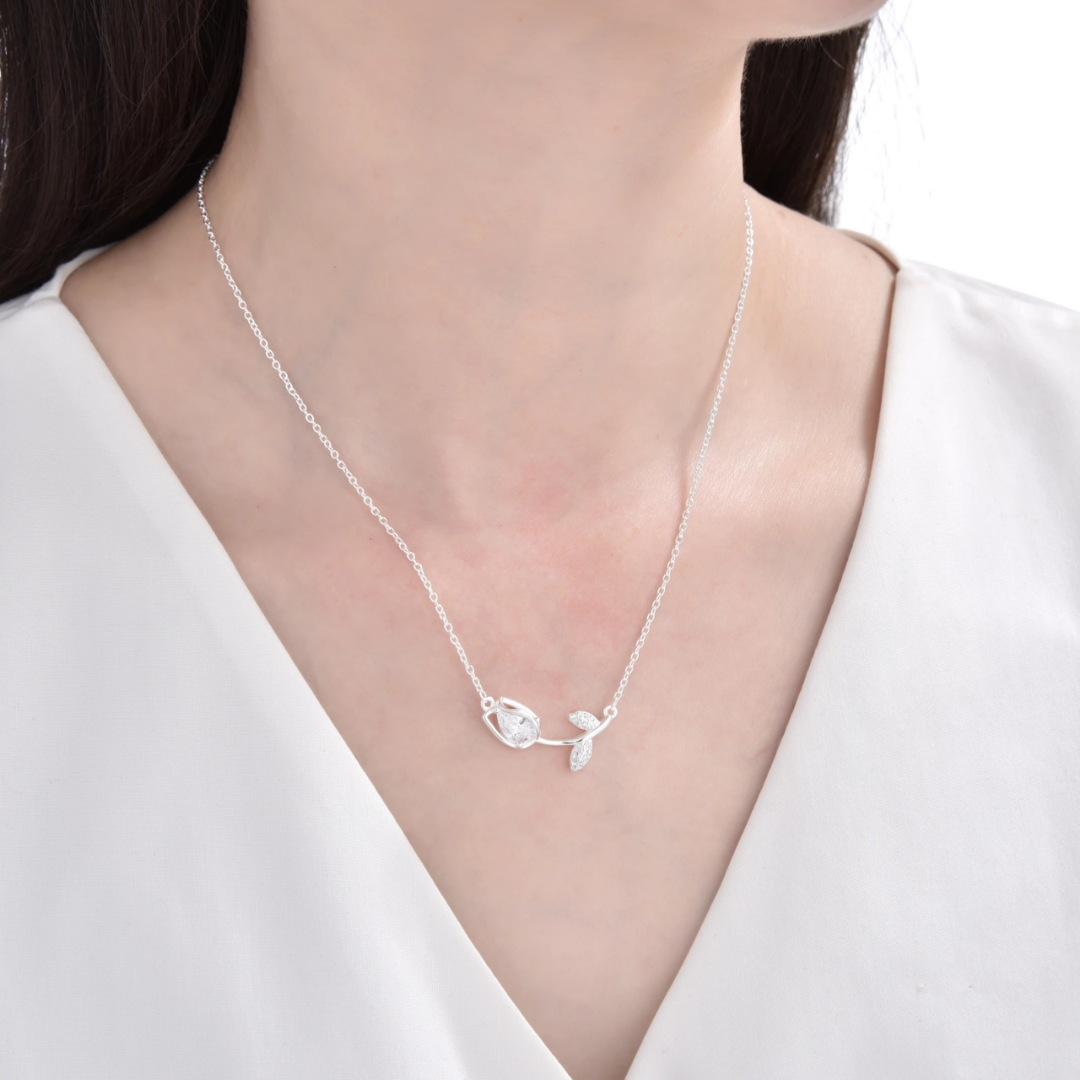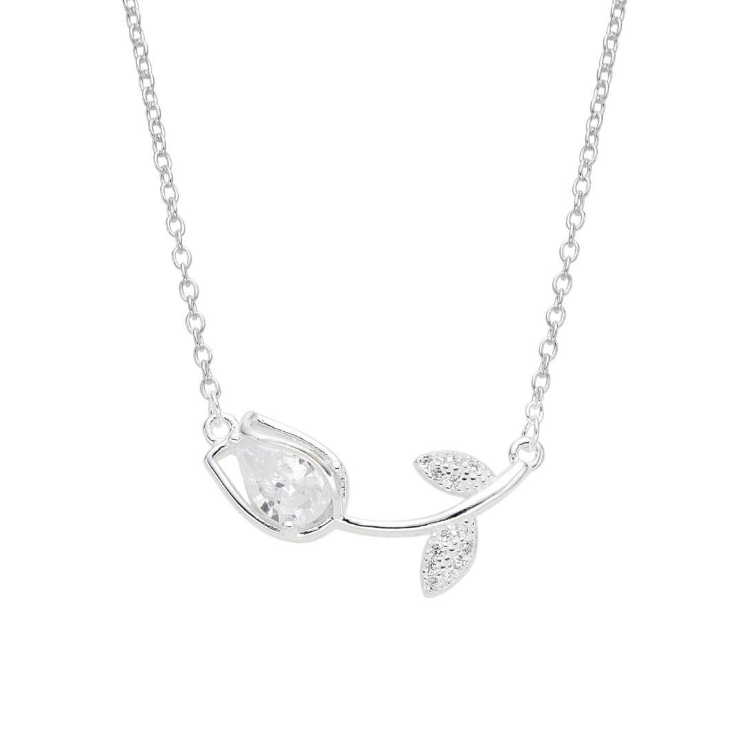 Hermosa Gargantilla de Tulipán Con Circonia 45CMS de Plata Italiana 925