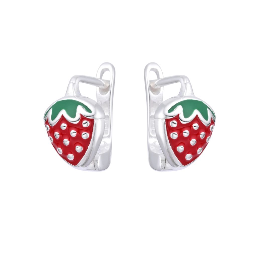 Hermosos Huggies de Fresa 10mm, Plata Italiana 925.