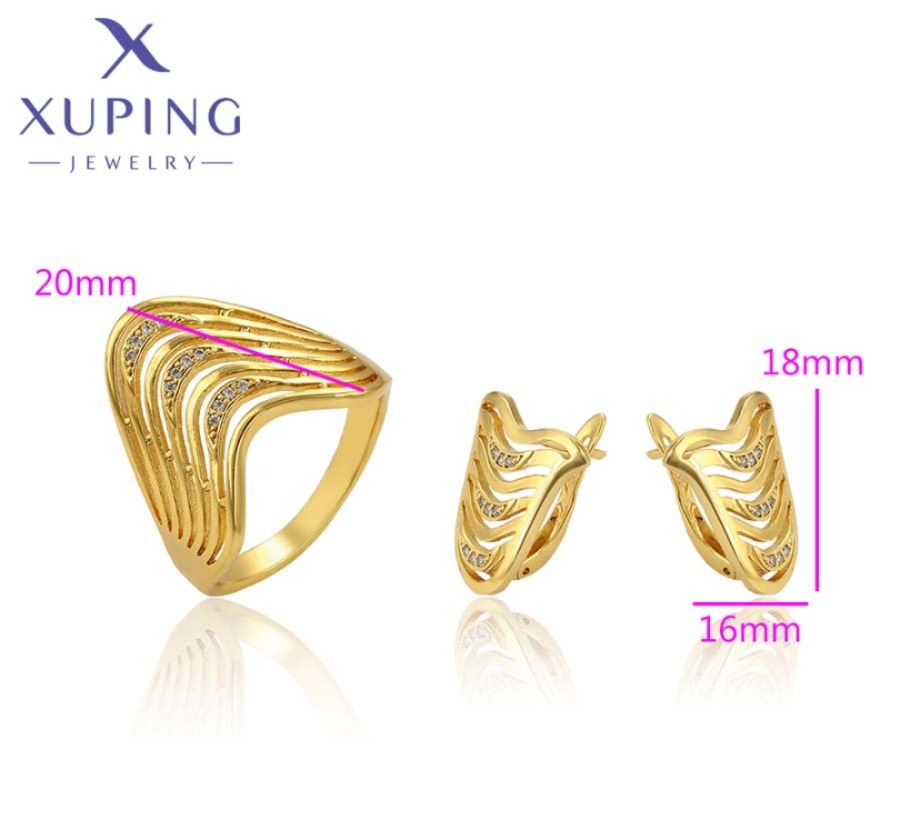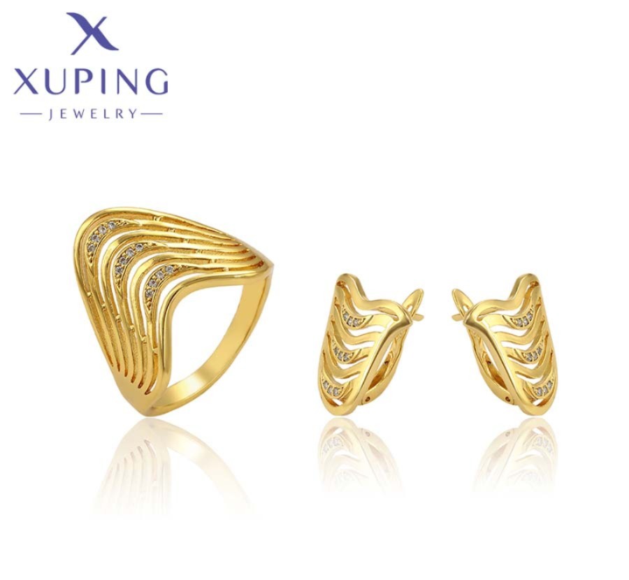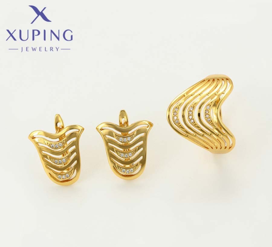 Hermoso y Elegante, Juego de Hugguies y Anillo, Baño de Oro Xuping .
