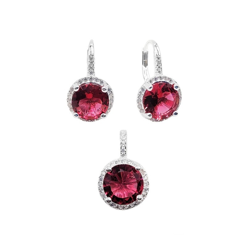 Hermoso y Elegante Juego Redondo de Aretes y Dije, Plata Italiana 925.