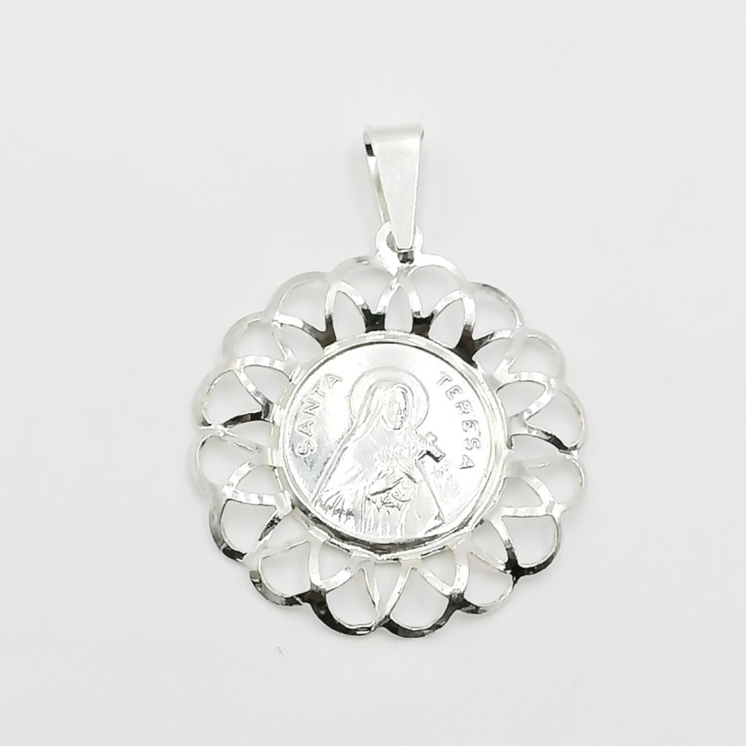 Hermosa medalla de la Santa Teresa 32 mm, plata italiana 925.