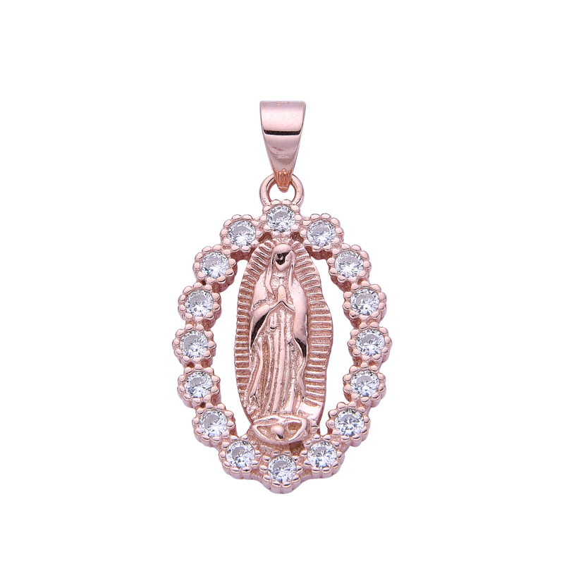 Hermosa medalla de la virgen de Guadalupe 15x19mm, plata italiana rosada con circonias.  No incluye cadena