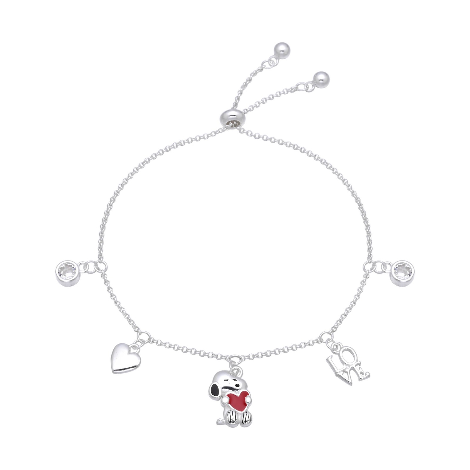 Hermosa Pulsera Ajustable de Snoopy Plata Italiana 925