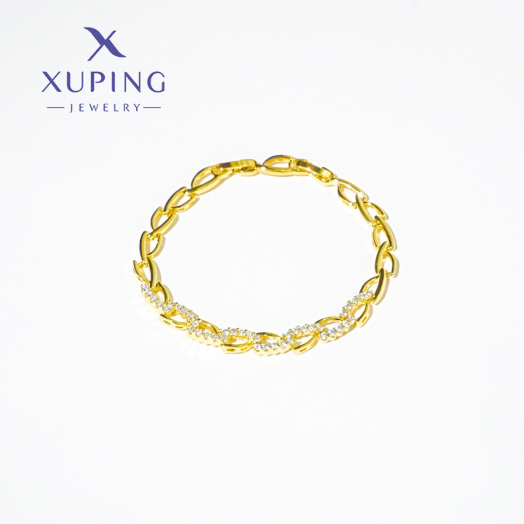 Hermosa y elegante Pulsera con Circonias, Baño de Oro 18k Xuping 17 CMS*6mm.