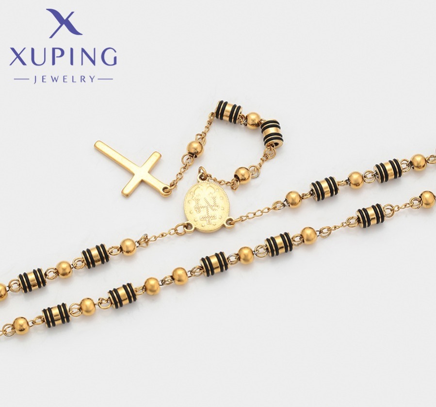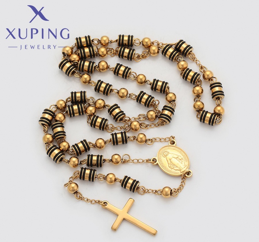 Hermoso y elegante Rosario de Acero Inoxidable, diseño surtido Negro, 24k Xuping.
