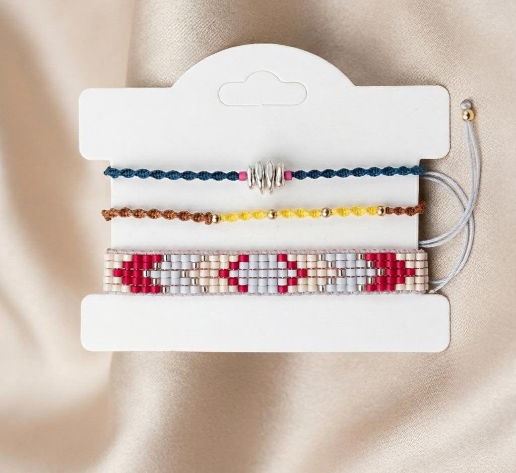 Set de tres pulseras de joyería hecha a mano diseño variado