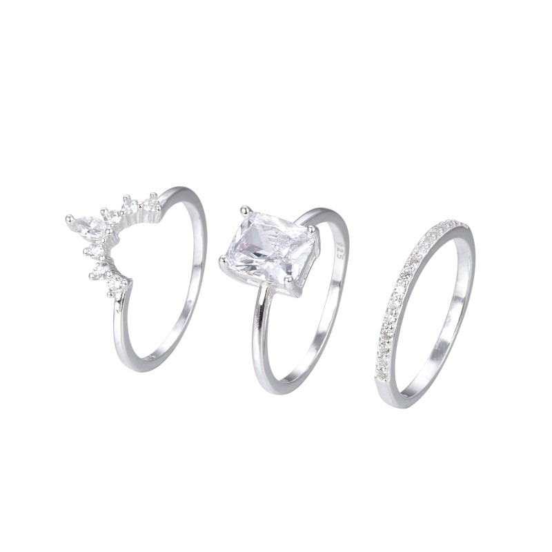 Trio de Anillos de Matrimonio para Dama. Plata Italiana 925 talla 6.