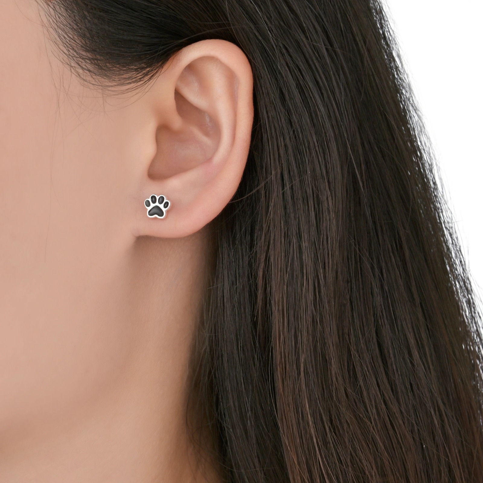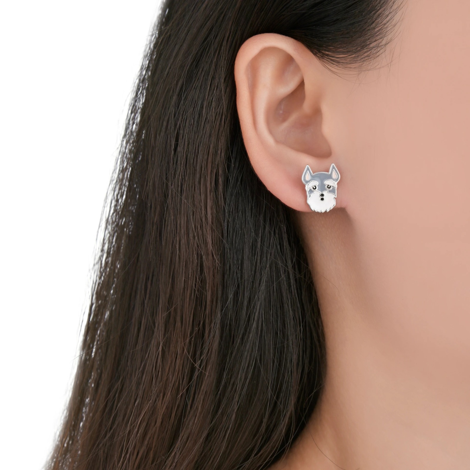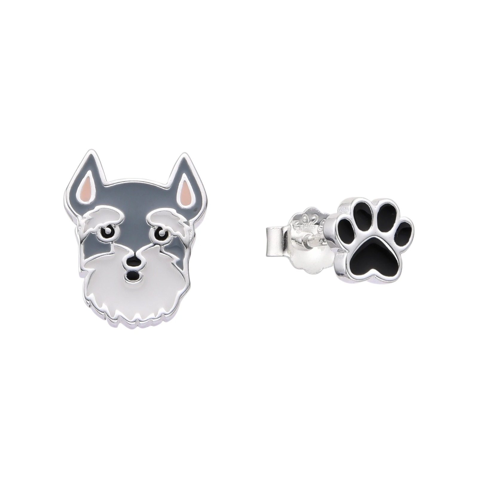 Hermosos Y elegantes, Zarcillo Desiguales de Perro Schnauzer y Huella, Plata Italiana 925
