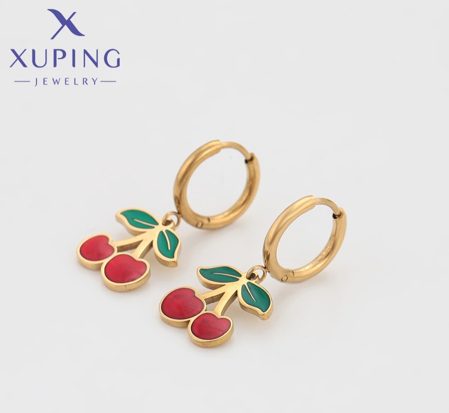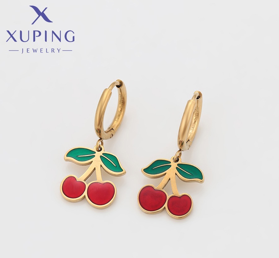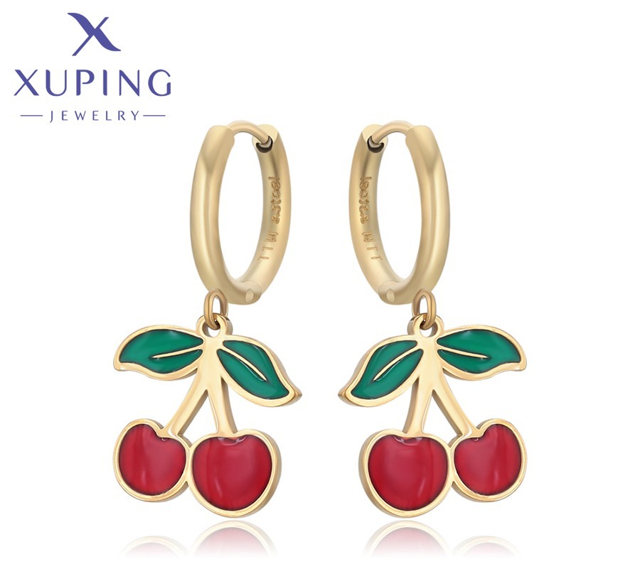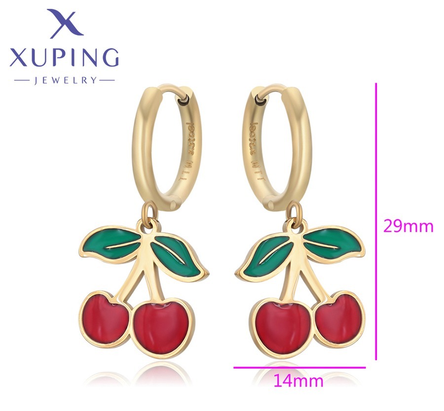 Zarcillos de Cereza de Acero Inoxidable, Xuping 14K