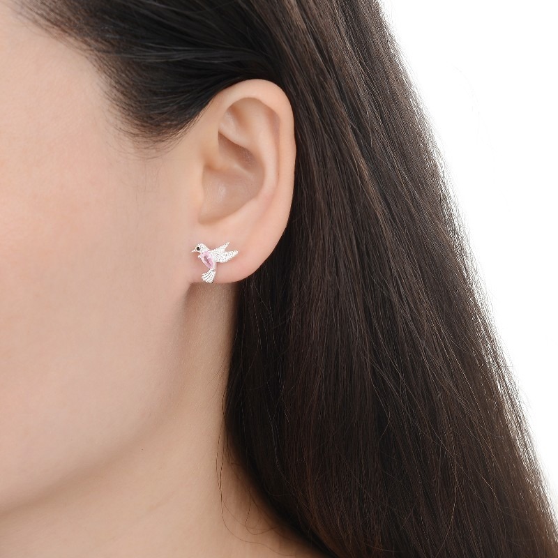Hermosos y elegantes, Zarcillos de Colibrí, Plata Italiana 925.