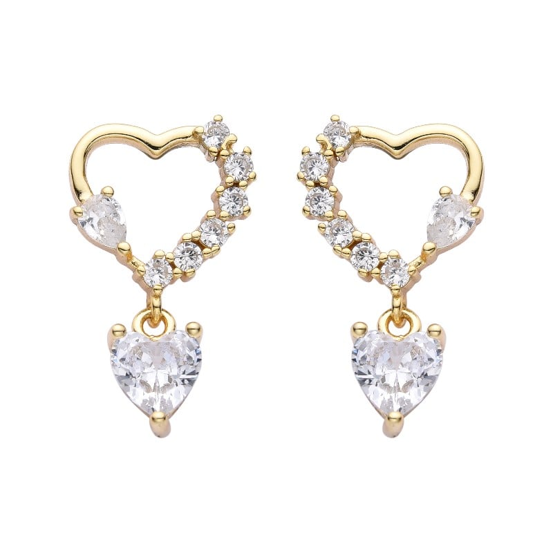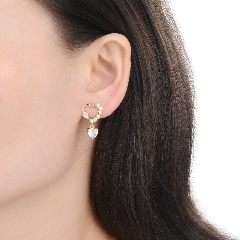 Hermosos zarcillos de corazón, plata italiana dorada 925 con circonias, cierre de mariposa.