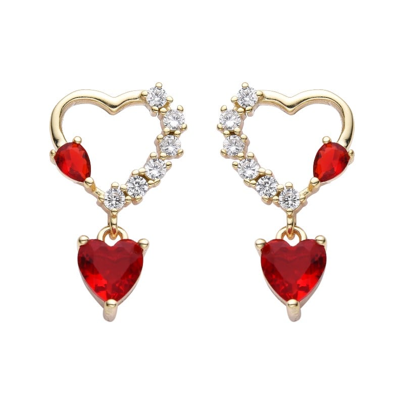 Hermosos zarcillos de corazón, plata itaiana dorada con circonias, cierre de mariposa