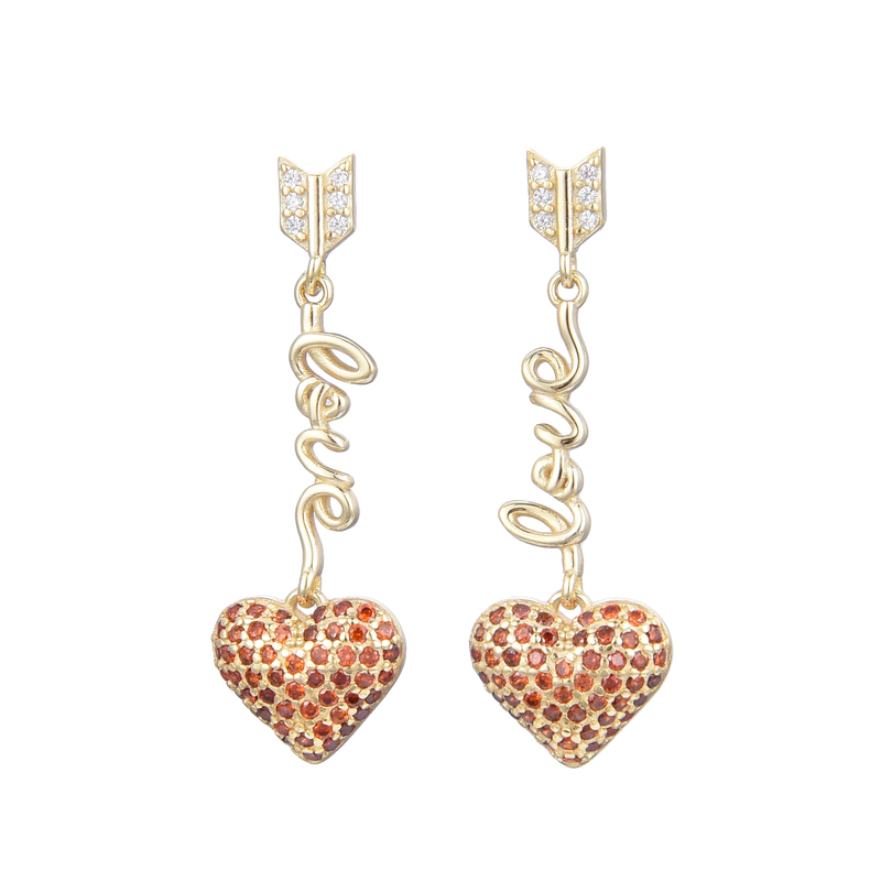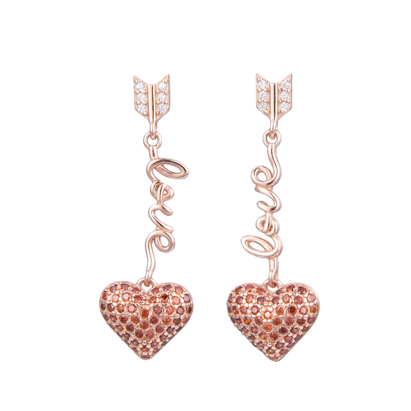 Hermosos Zarcillos Largos de Corazón con Circonias, Cierre de Mariposa, Plata, Plata Dorada y Plata Rosada 925.