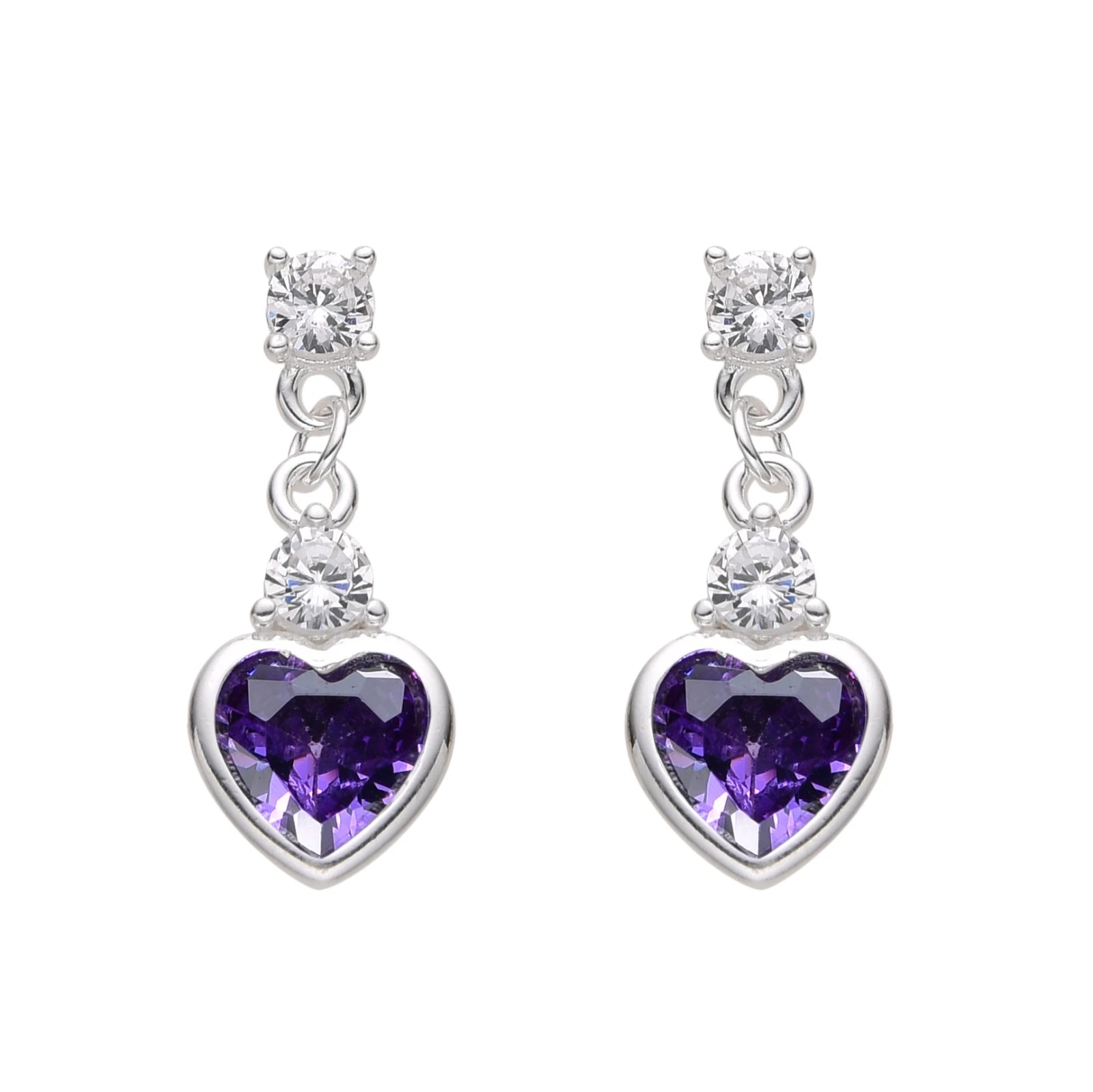 Zarcillos de Corazón color Morado, Plata Italiana 925