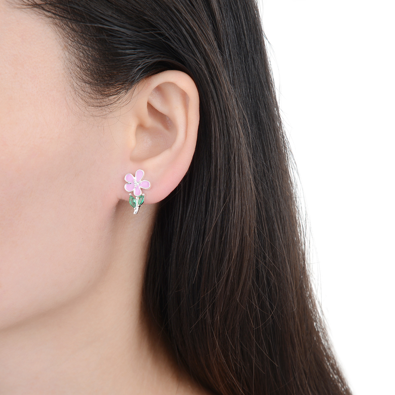 Hermosos zarcillos de flor, plata italiana 925 con circonias.