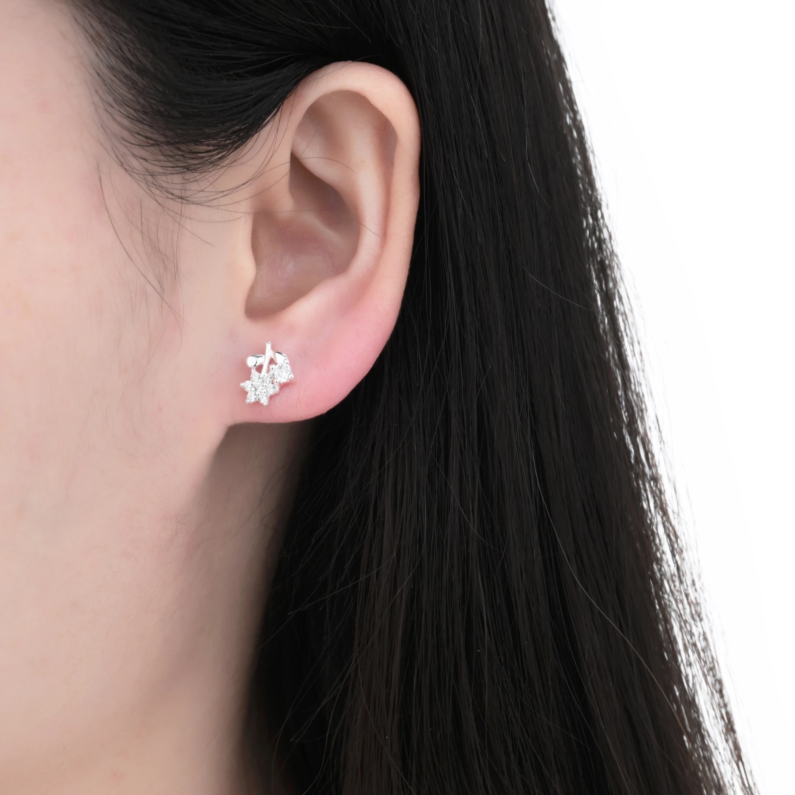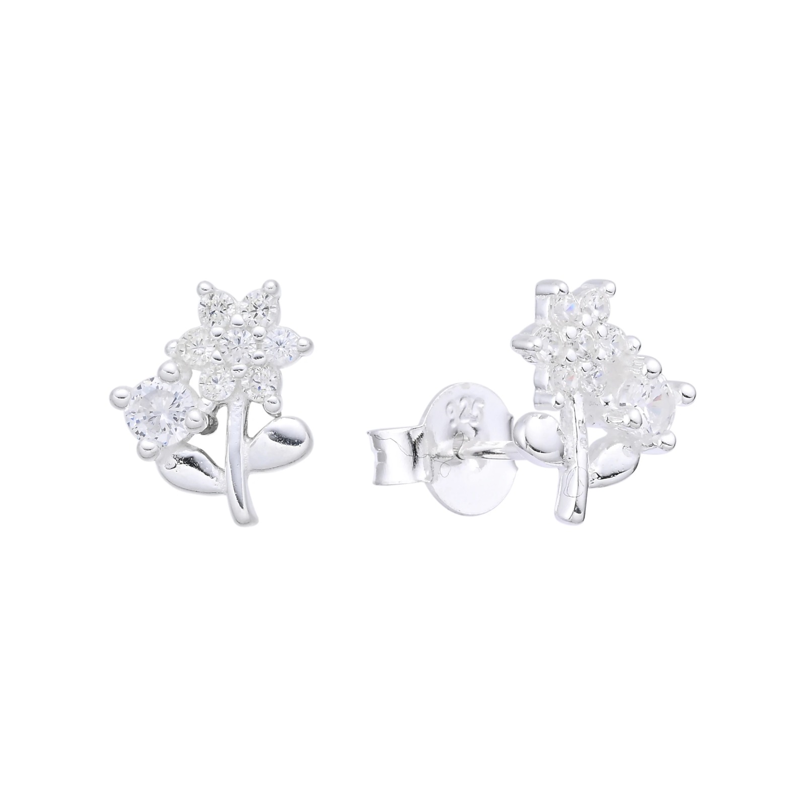 Hermosos y elegantes, Zarcillos de Flor y punto de luz Plata Italiana 925.