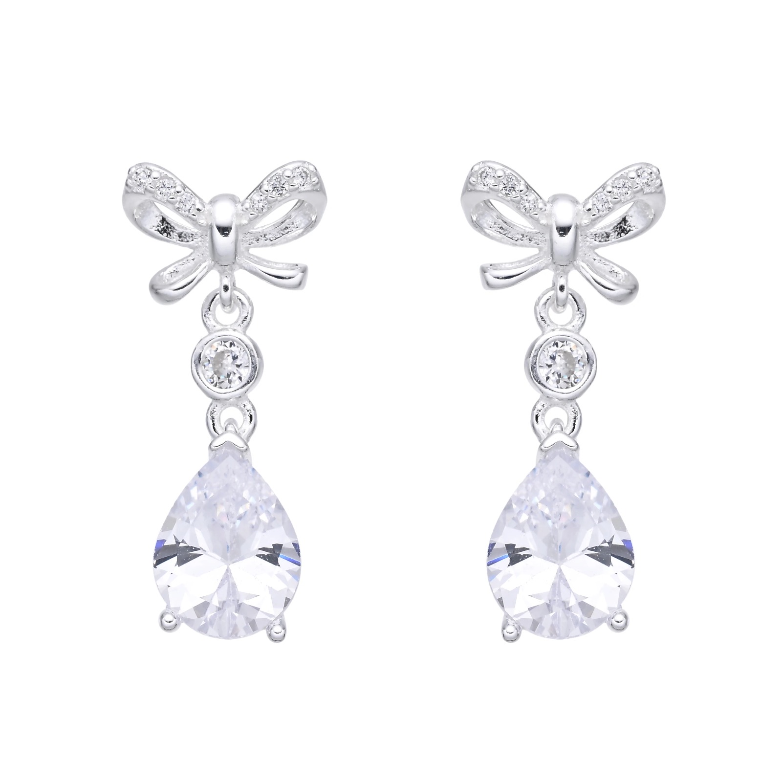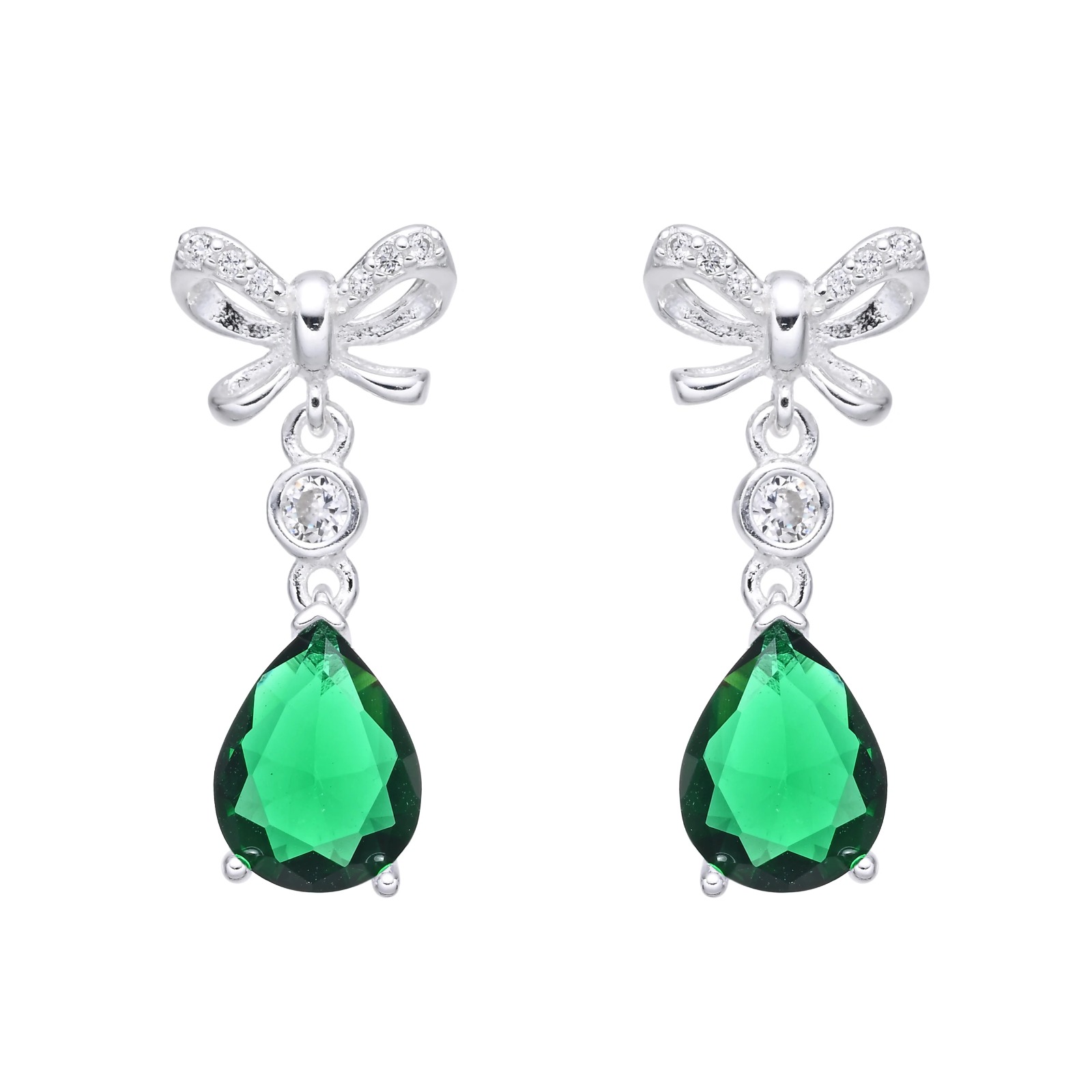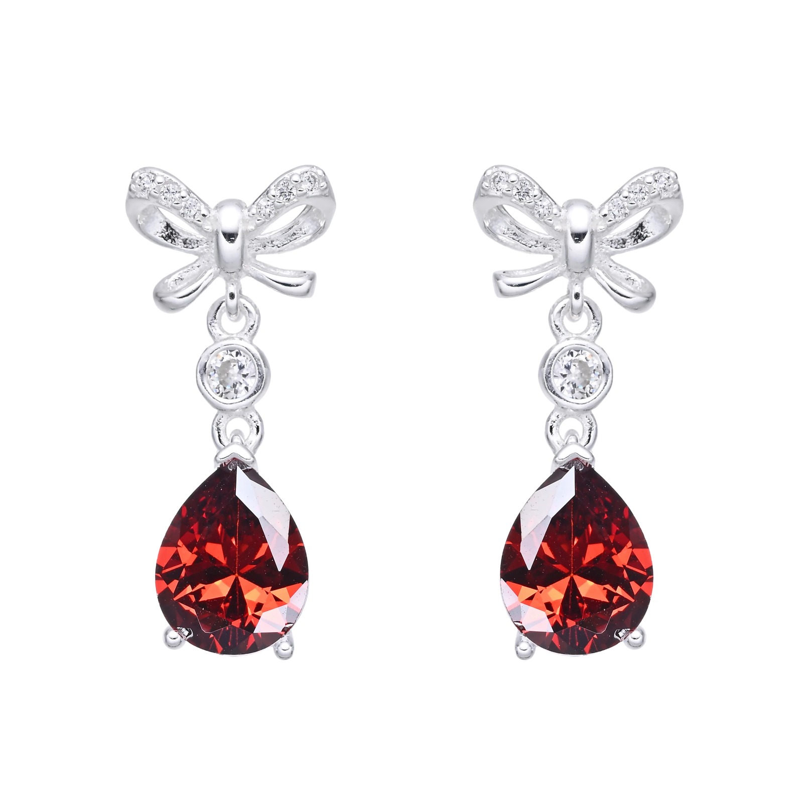 Zarcillos de Gota con Lazo y Puntos de Luz, Color Rojo, Blanco, Azul, verde y Blanco Plata Dorada, Plata Italiana 925