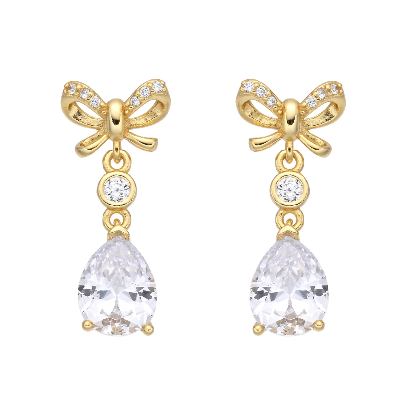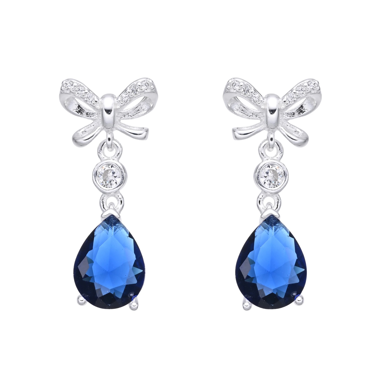 Hermosos y Elegantes Zarcillos de Gota con Lazo y Puntos de Luz, Color Rojo, Blanco, Azul, verde y Blanco Plata Dorada, Plata Italiana 925