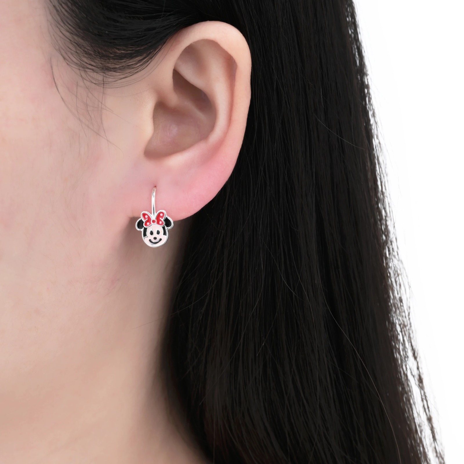Hermosos y elegantes, Zarcillos de Minnie Mouse, Plata Italiana 925.
