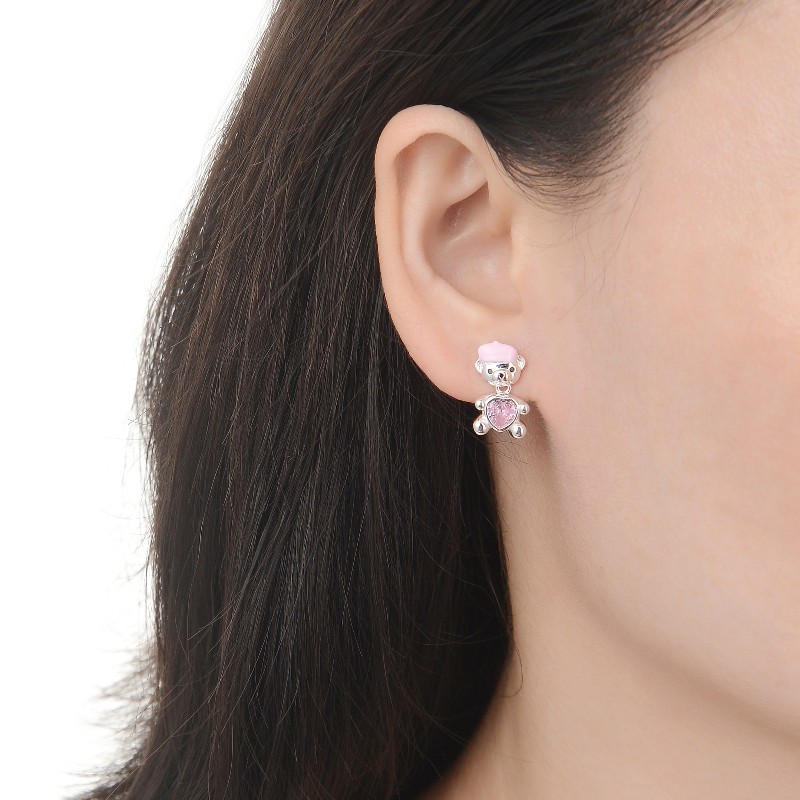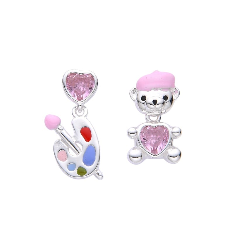 Hermosos zarcillos de oso y paleta, plata italiana 925 con circonias, cierre de mariposa.