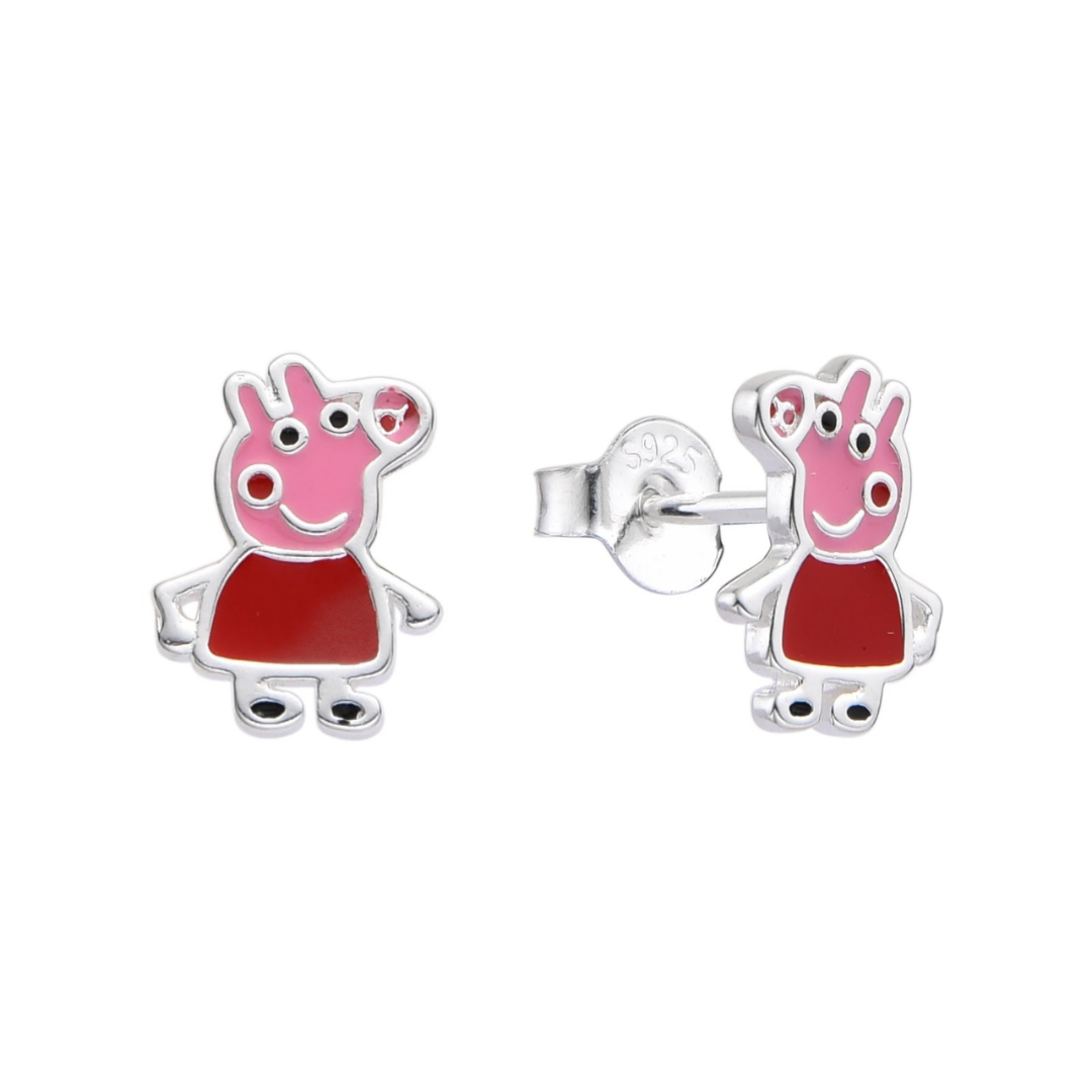 Hermosos Zarcillos de Peppa Pig de Plata Italiana 925 para niña.