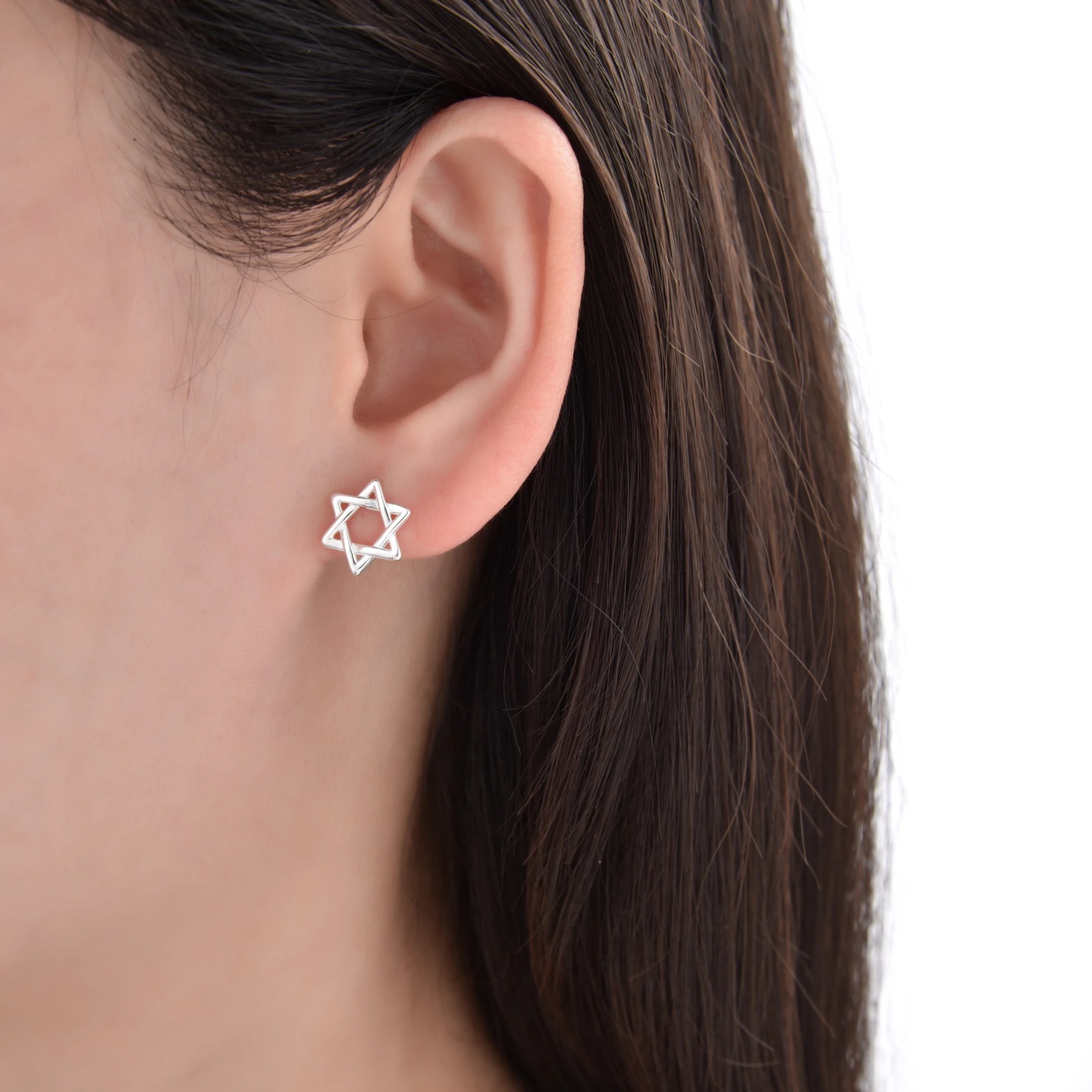 Hermosos y elegantes, Zarcillos Estrella de David, Plata Italiana 925.