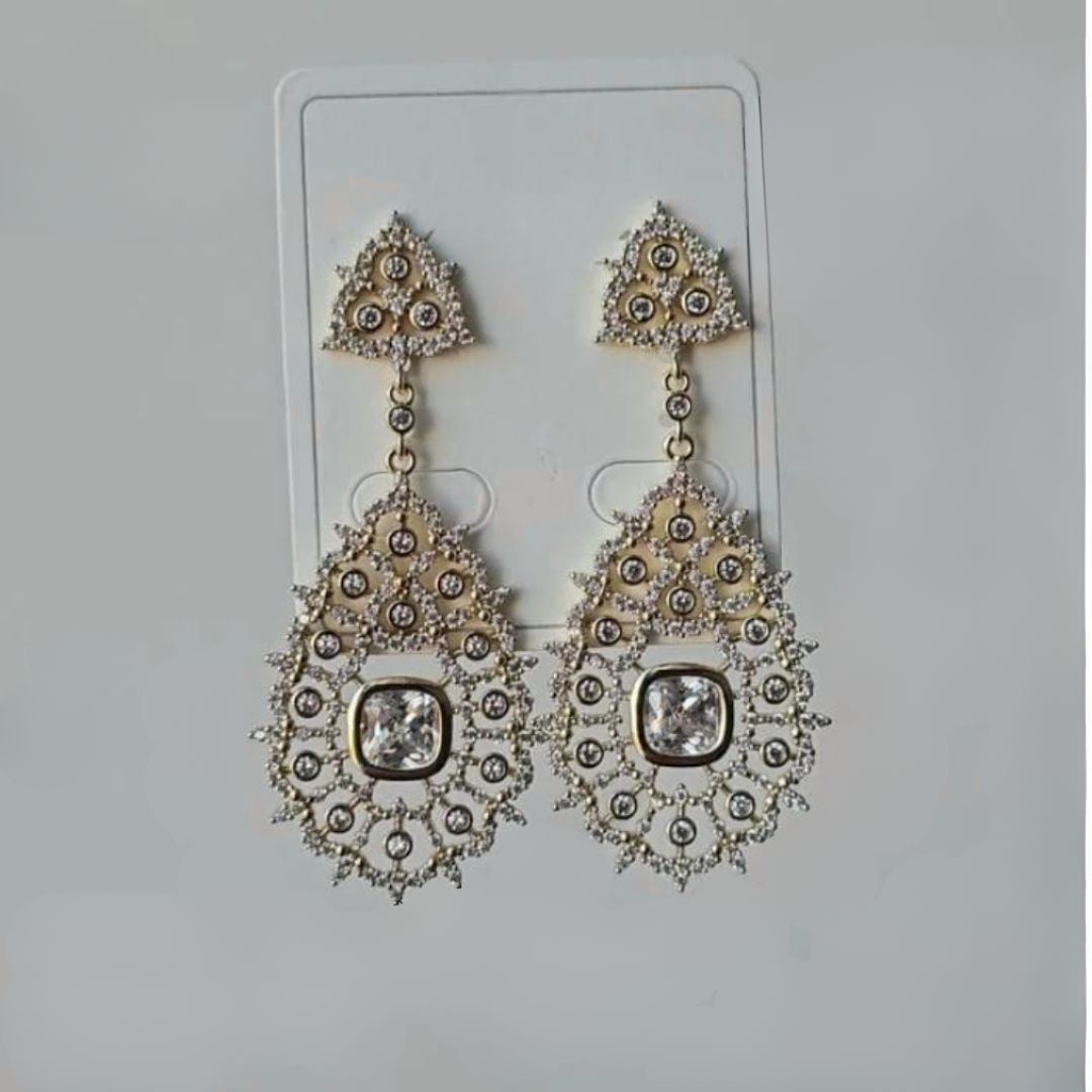 Hermosos Zarcillos Largos Con Circonias, Baño de Oro Xuping